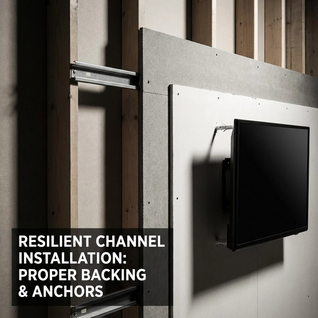Stop drilling into your acoustic investment. Resilient channel systems create sound isolation by decoupling drywall from wall studs, but mounting TVs, floating shelves, or built-in desks directly into the framing creates rigid sound bridges that eliminate acoustic benefits completely.