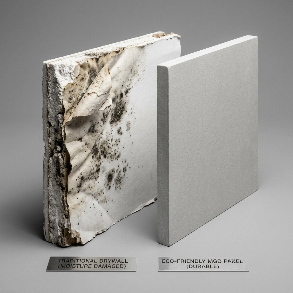 Traditional gypsum manufacturing involves high-temperature processing that consumes significant energy. Add the frequent replacement cycle due to damage, and you're looking at substantial long-term costs and environmental impact.
