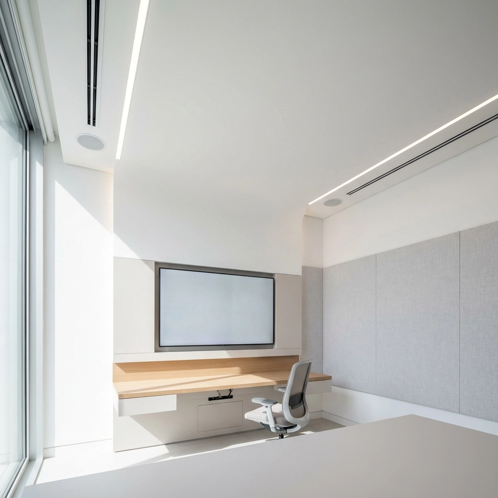 Home Office Sanctuaries Design your perfect work-from-home environment with built-in technology integration and custom storage solutions. Our home office installations feature smart cable management, integrated lighting systems, and acoustical treatments that create productive, inspiring workspaces.