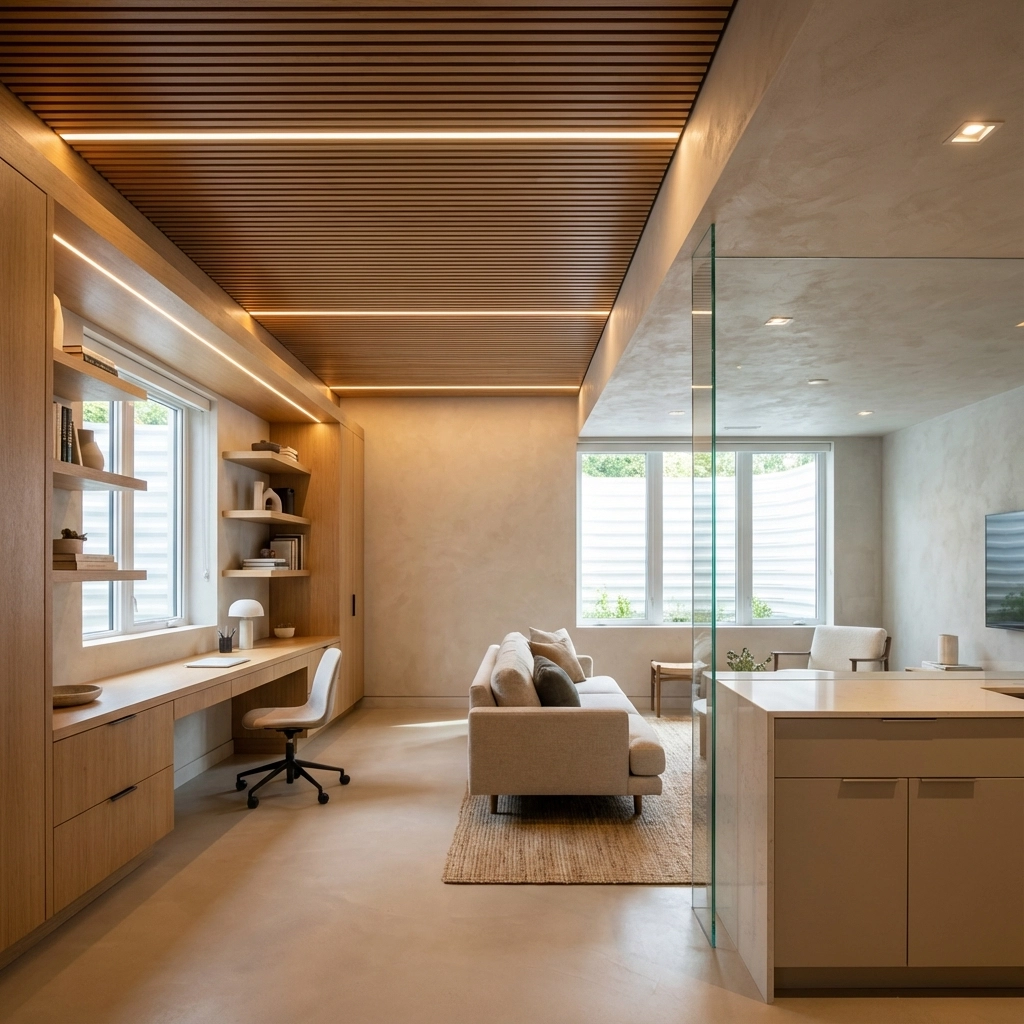 Create harmonious design integration through comprehensive project vision. One team understands how your custom ceiling design complements your wall finishes and lighting installation. Every element works together purposefully, from your home office built-ins to your entertainment area acoustics.